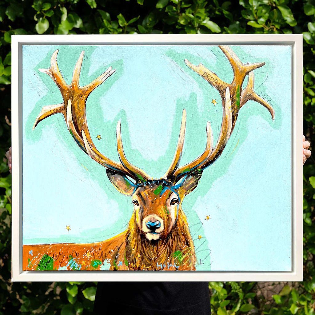 Acrylic and oil pastels on canvas, painted in 2024, white or black frame available