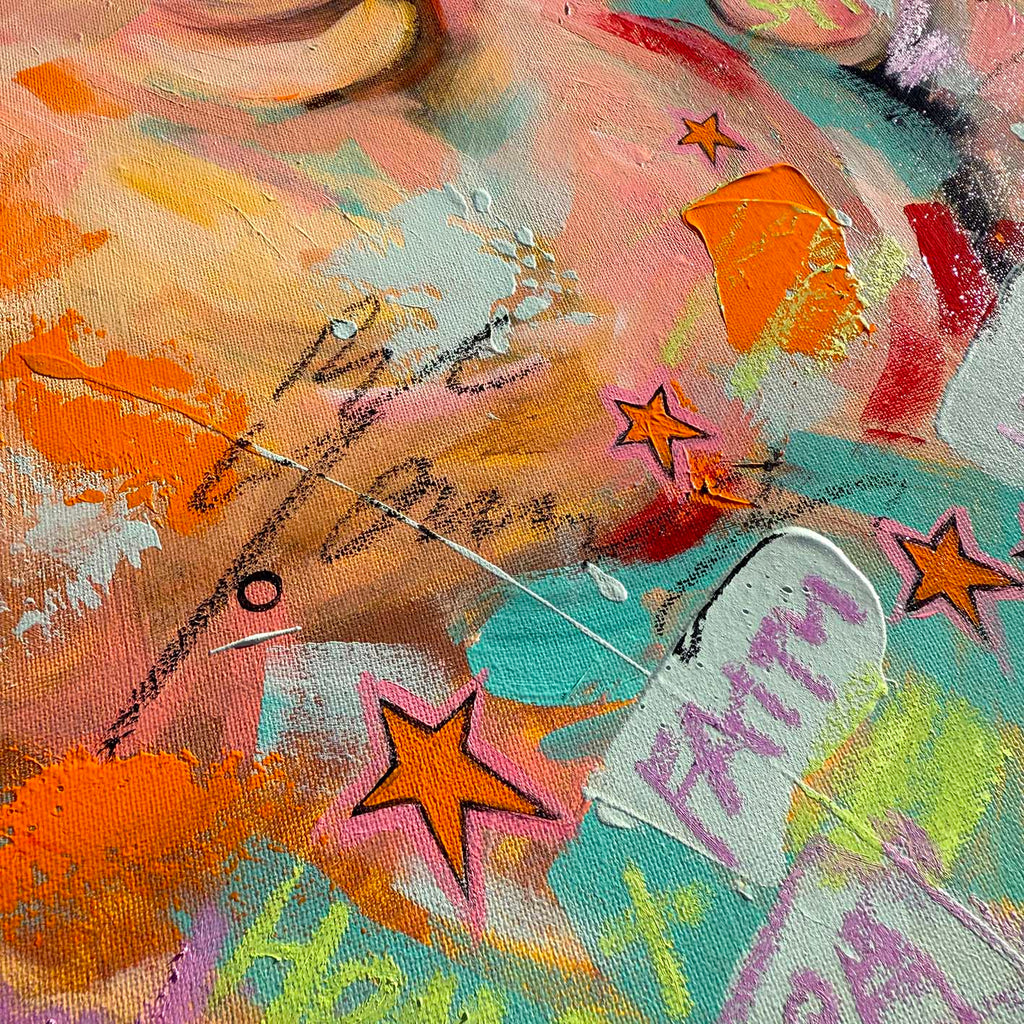 Acrylic and oil pastels on canvas, painted in 2025